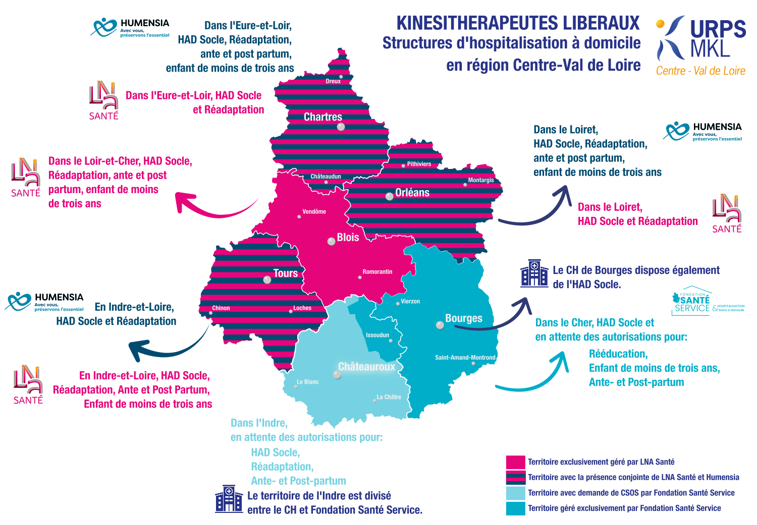 Le kinésithérapeute libéral est un acteur majeur du maintien à domicile et nécessaire à l’autonomisation du patient, quel que soit son âge. L’URPS MKL CVL a pour objectif de valoriser les soins de kinésithérapie à domicile, et répondre à la volonté nationale de développer les soins à domicile et le recours à l’Hospitalisation à Domicile (HAD). C’est dans ce cadre qu’elle a collaboré avec les établissements HAD de la région pour proposer des conventions cadrant l’implication des kinésithérapeutes libéraux dans l’organisation des soins.
